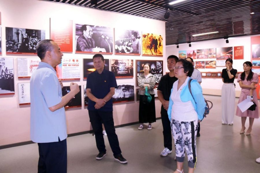 党员们跟随讲解一路前行,不时驻足,讲解员用生动的语言,讲述了艰苦卓绝的岁月中,中国共产党带领全国人民实现民族独立、国家富强的英勇事迹,一帧帧珍贵的影像、一个个感人的故事,令他们动容、仰望、致敬。